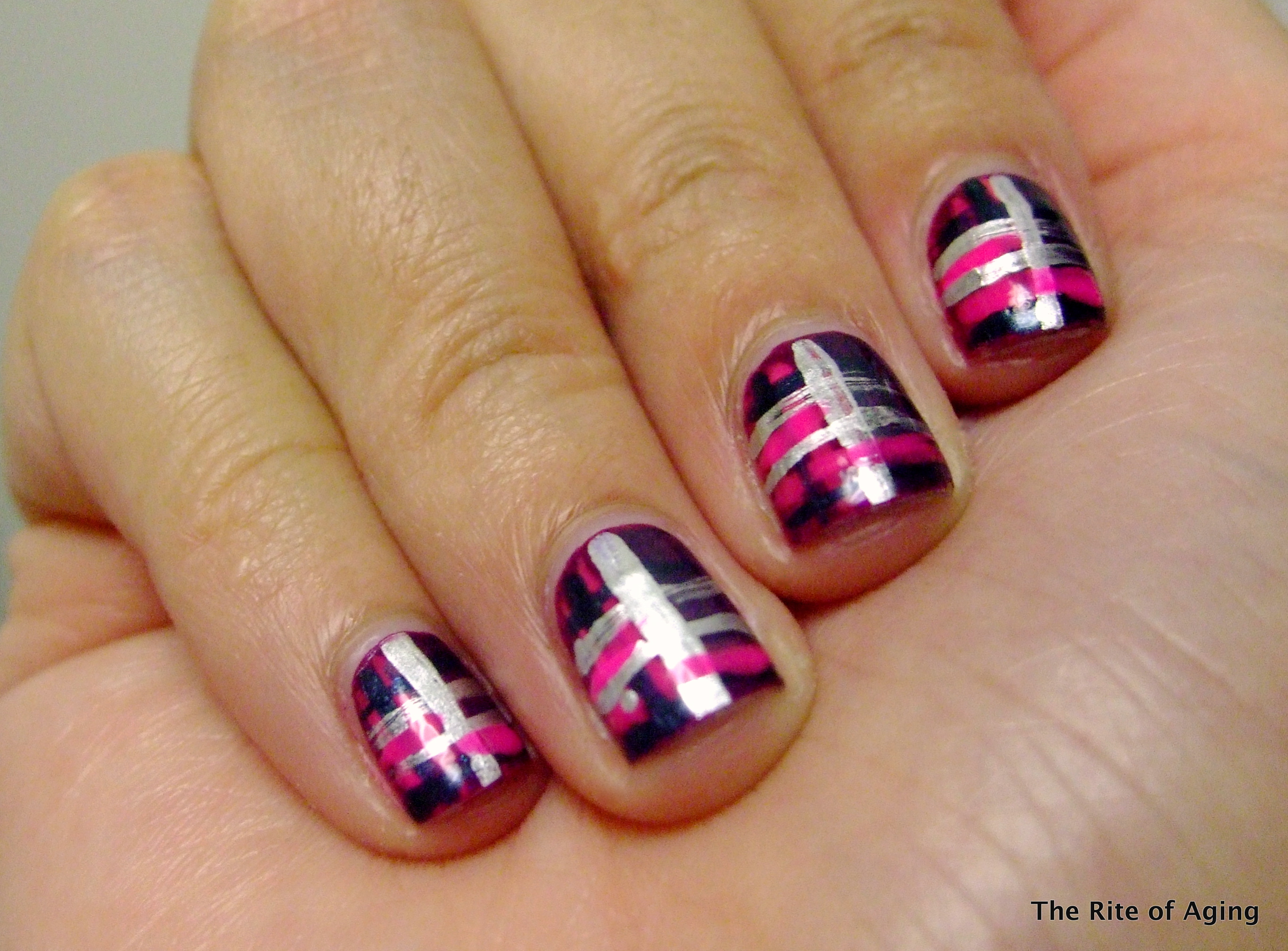I really like how these came out: the color scheme, the lines, the shadows, everything! I think plaid especially works well for shorter nails!