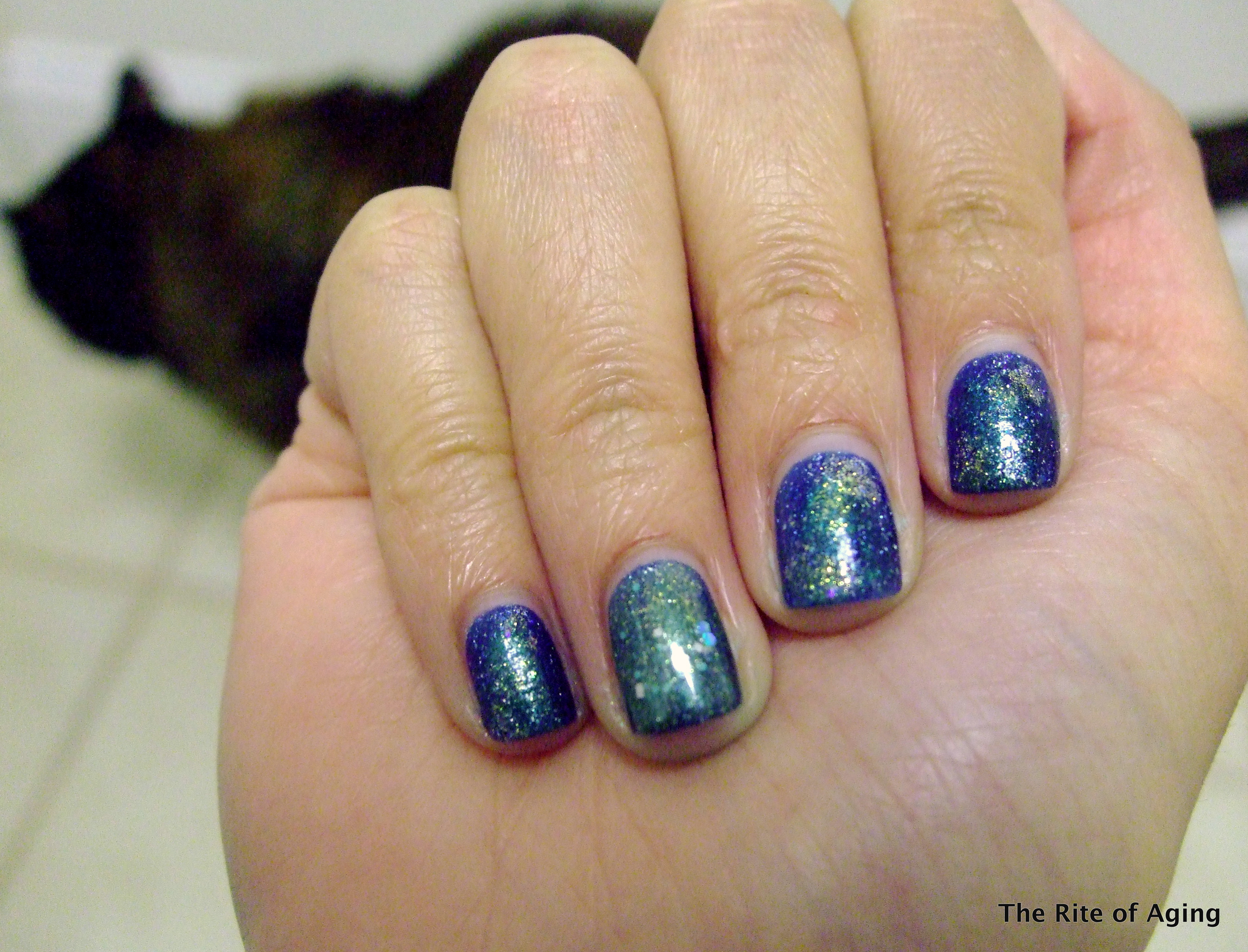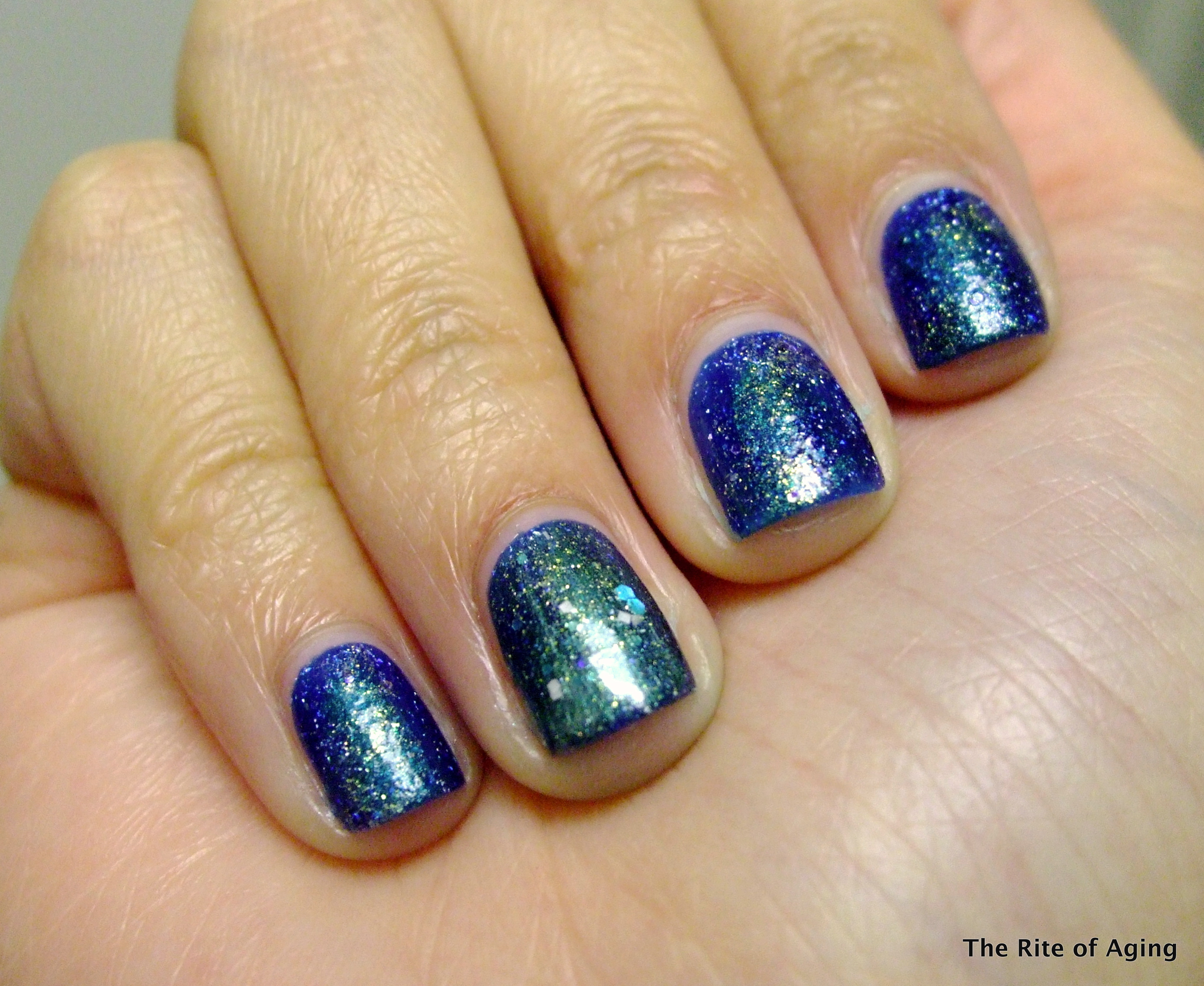I used 2 coats Zoya Dream as my base and a sheer coat of Serum No 5 Forest Lights on my ring.