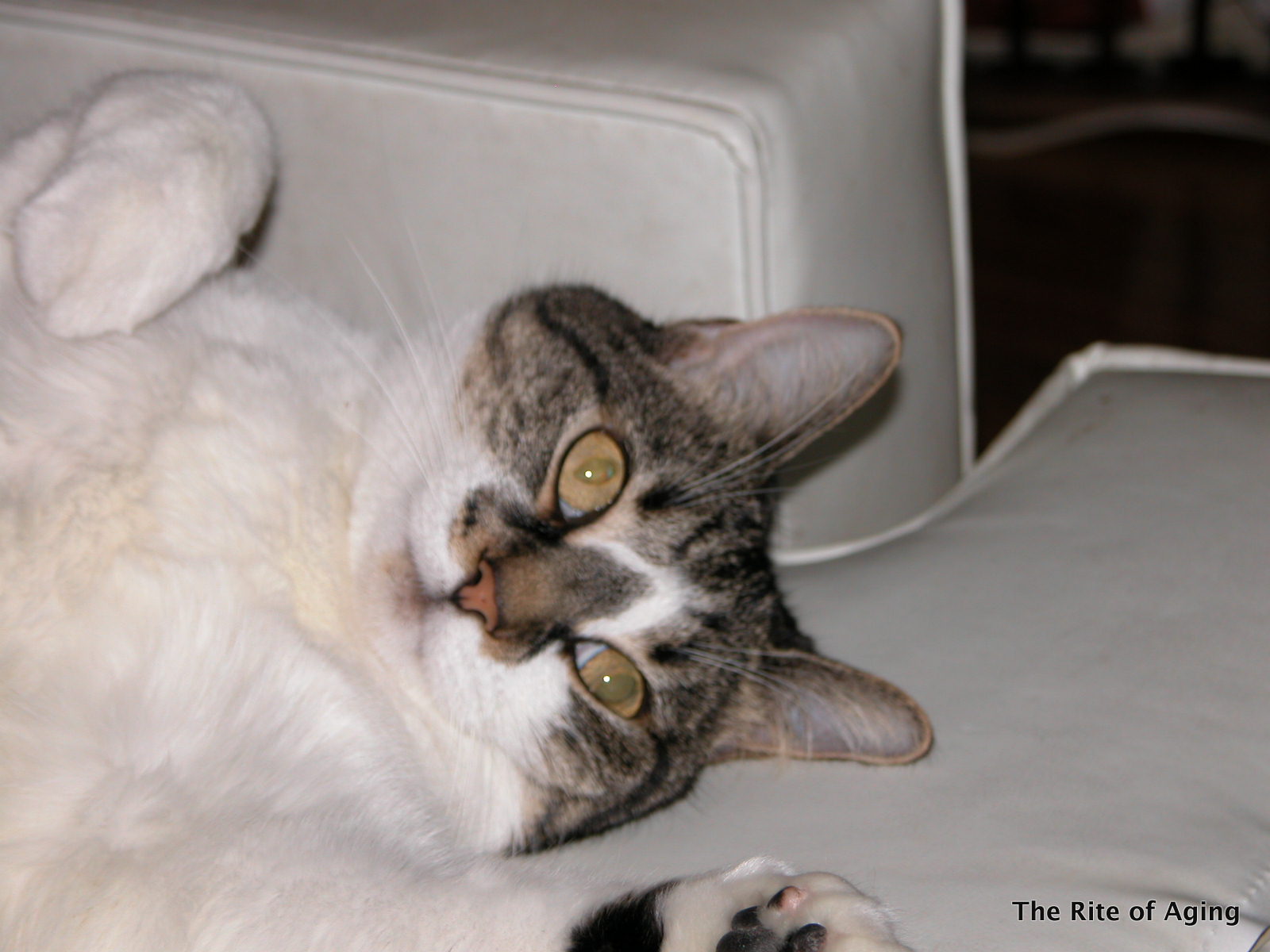 One holiday, I guinea-pig sat for a friend. I fed them lettuce twice a day while Marmalade watched from the corner. Her pupils dilated and her tail shook back and forth. Every time she took a step forward to investigate she ran back to her corner.