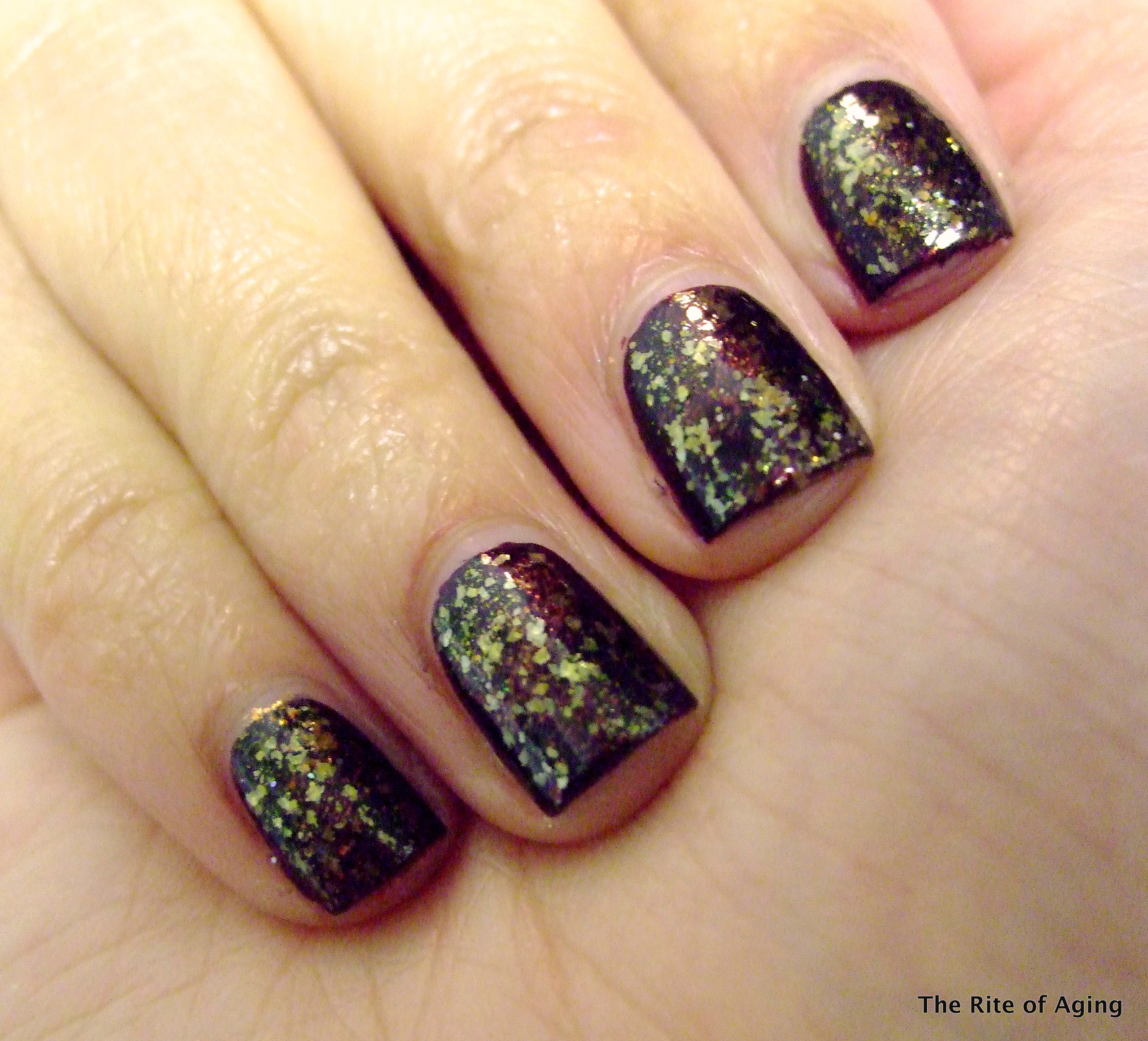 A very sheer coat of Zoya Maria Luisa but it is totally packed with gold flakes!
