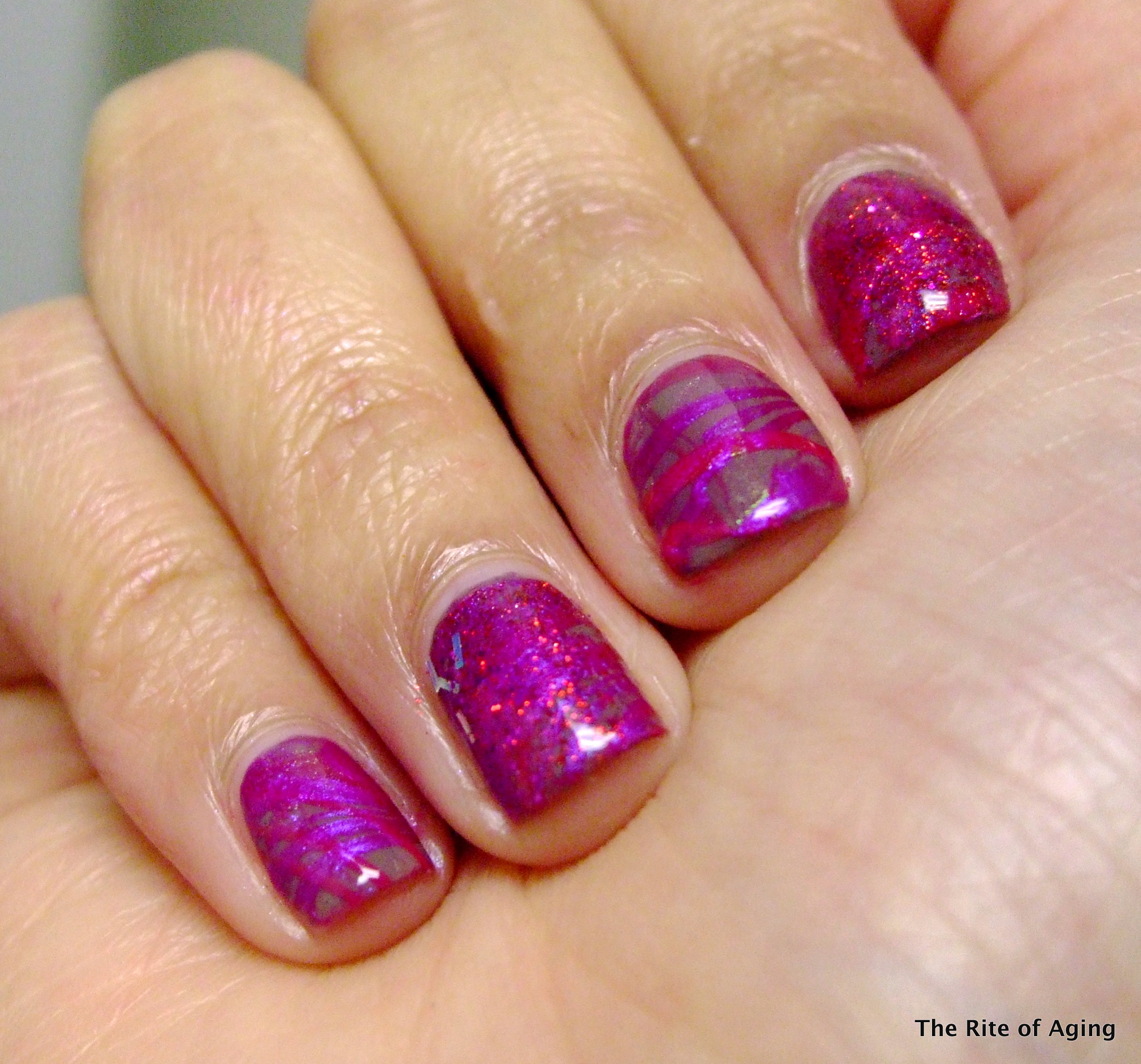 I marbled with China Glaze Fuchsia, Caribbean Temptation and Zoya Reece. Question: I cannot marble with Zoya polishes to save my life. China Glaze polishes work so well. Does anyone have any tricks for Zoya polishes?