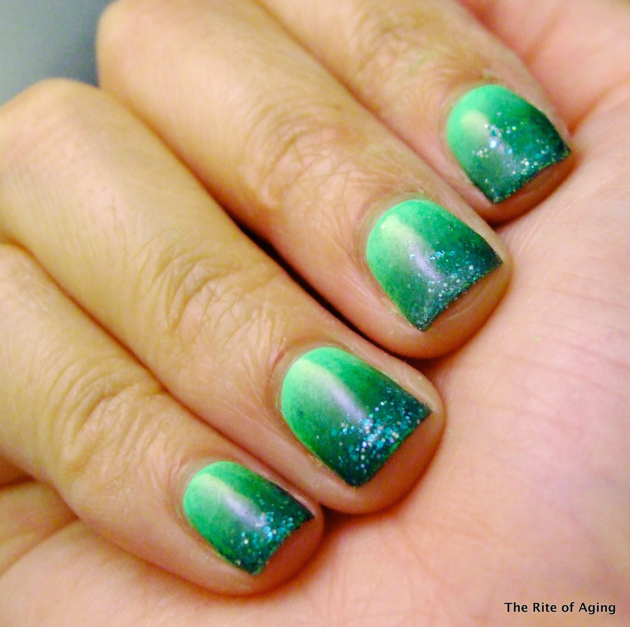 I used Deborah Lippman Defying Gravity in the middle and One Short Day on the tips.