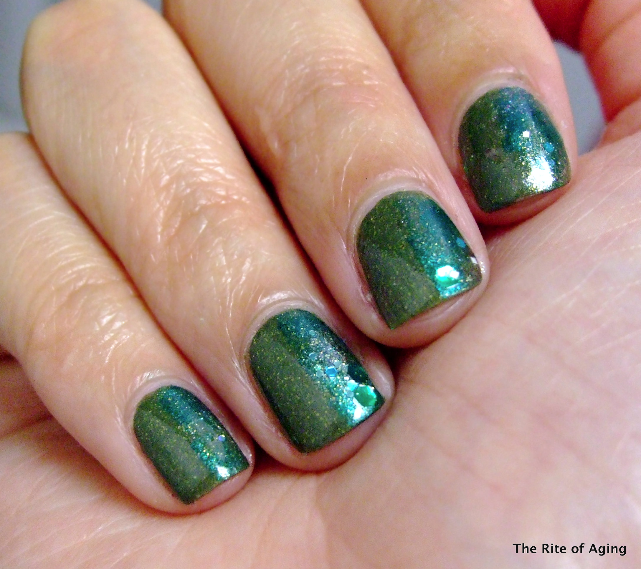I sponged Zoya Giovanna and Serum No 5 Forest Lights on the other side.