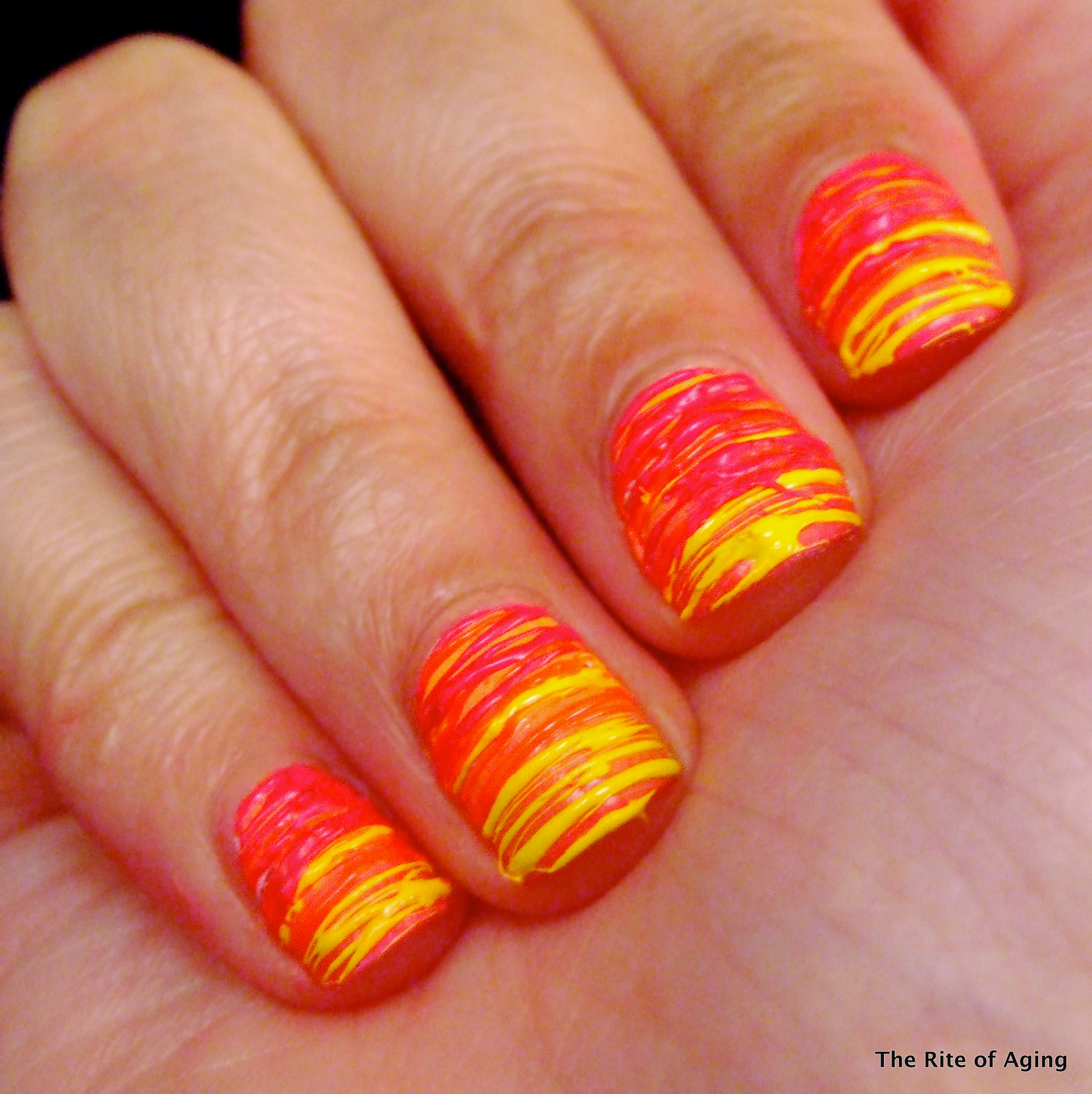 Anyways, I couldn’t think of anything other than a sponge gradient which I saw many other people did so I decided to up the ante and do a double sunset gradient with the sponge AND sugar-spin technique! Hehehe..
