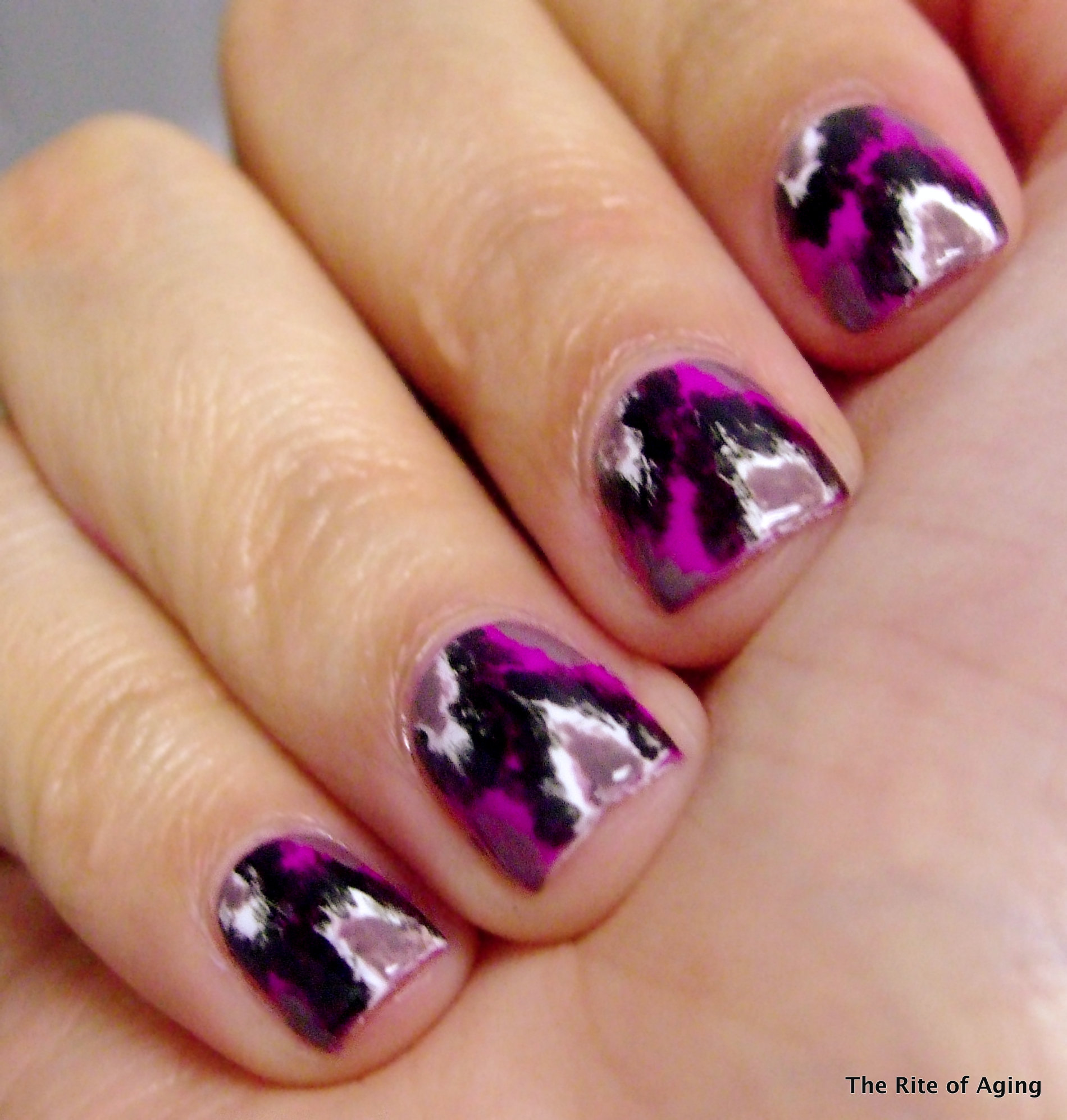 I sealed the base with Seche Vite and detailed with Sephora by OPI Metro Chic, Wet n Wild Black Creme and Julie G White Orchid.
