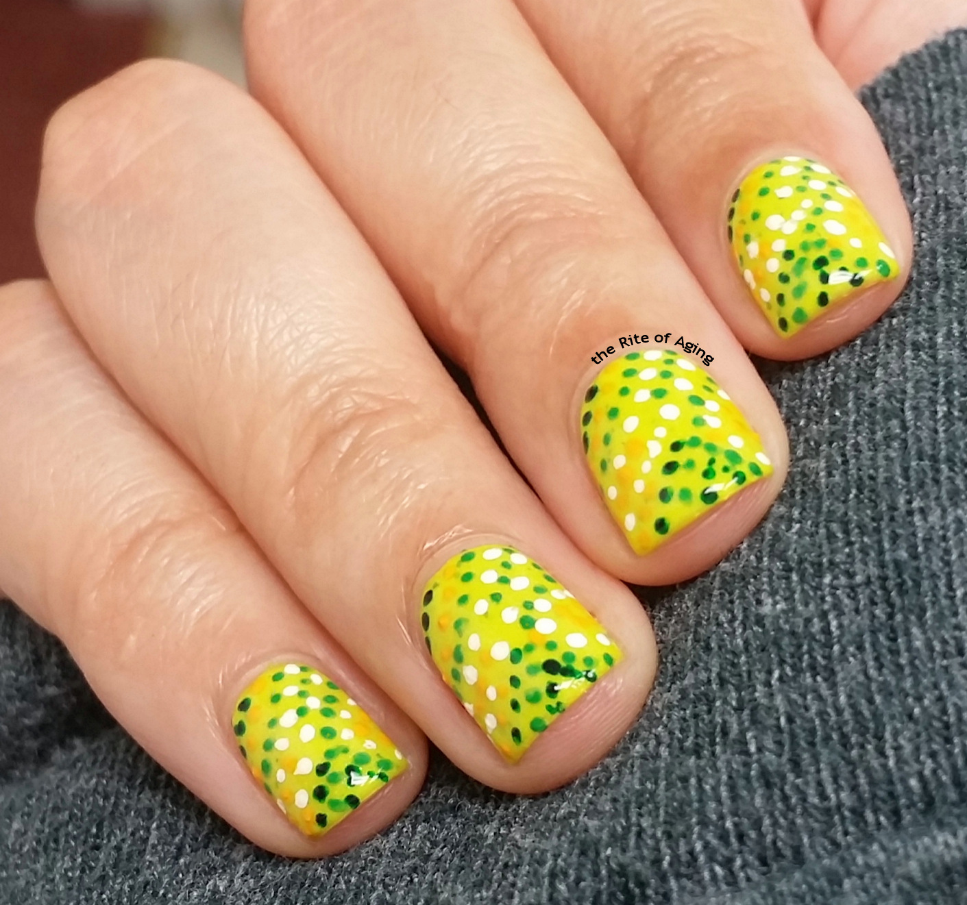 I don’t have a lot to say on today’s manicure except that I cannot stop dotting on paper! Why not continue the trend on my nails?