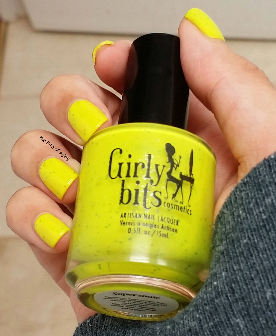 I took a quick swatch photo of the base color. I really should wear this on it’s own much more often. It looks great against my skin and it’s the perfect neon without screaming “HI! I’M HERE!”