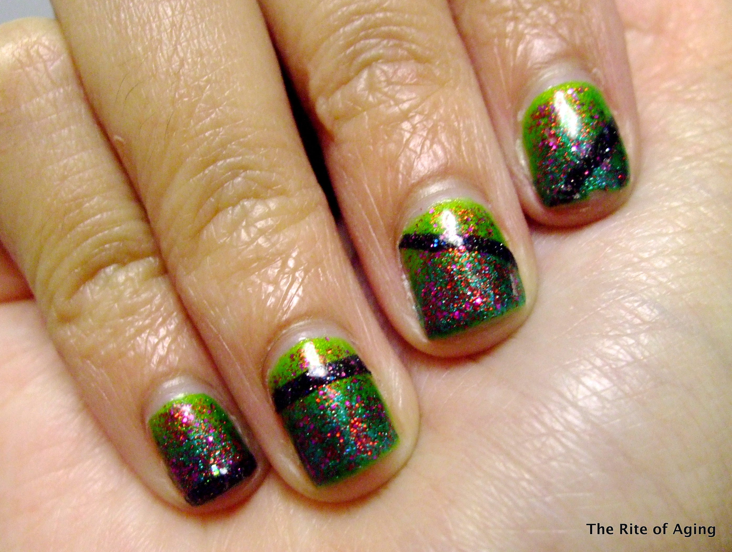 I used butter London “The Black Knight” on the parts not covered by tape.