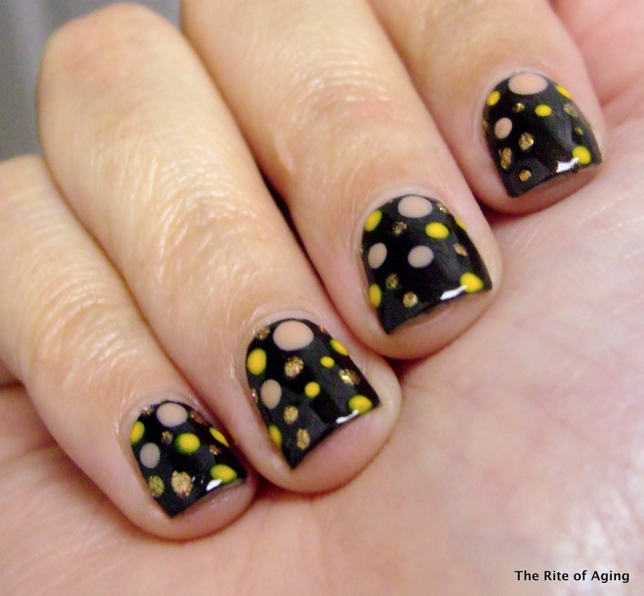 I sponged with a foam eyeshadow applicator, Milani Foxy Lady, CoverGirl Glosstinis Flamed Out, Zoya Goldie and Barry M GNP 8/Grapefruit.