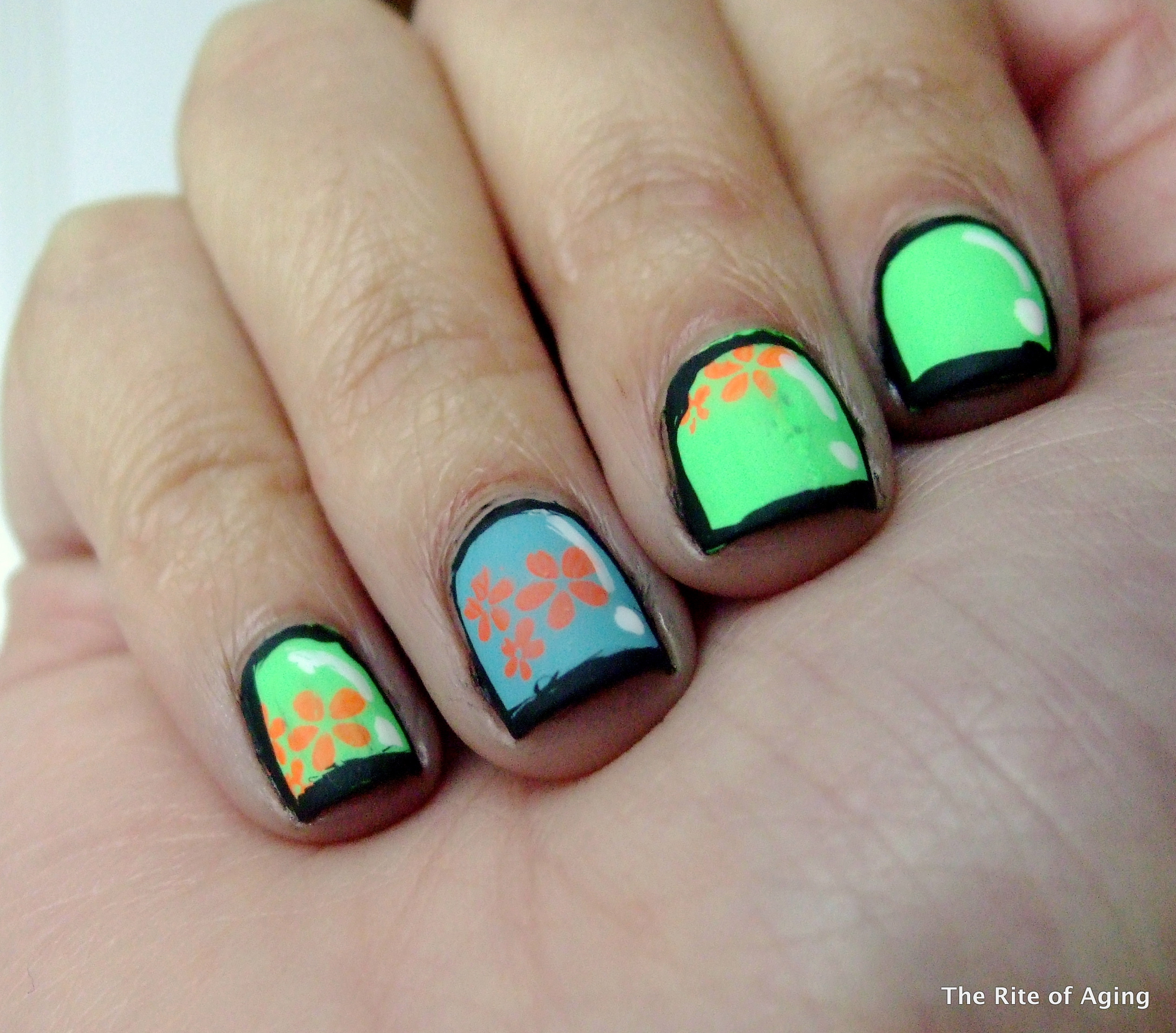 I used 2 coats of Color Club Twiggie and Milani Peacock as my base.