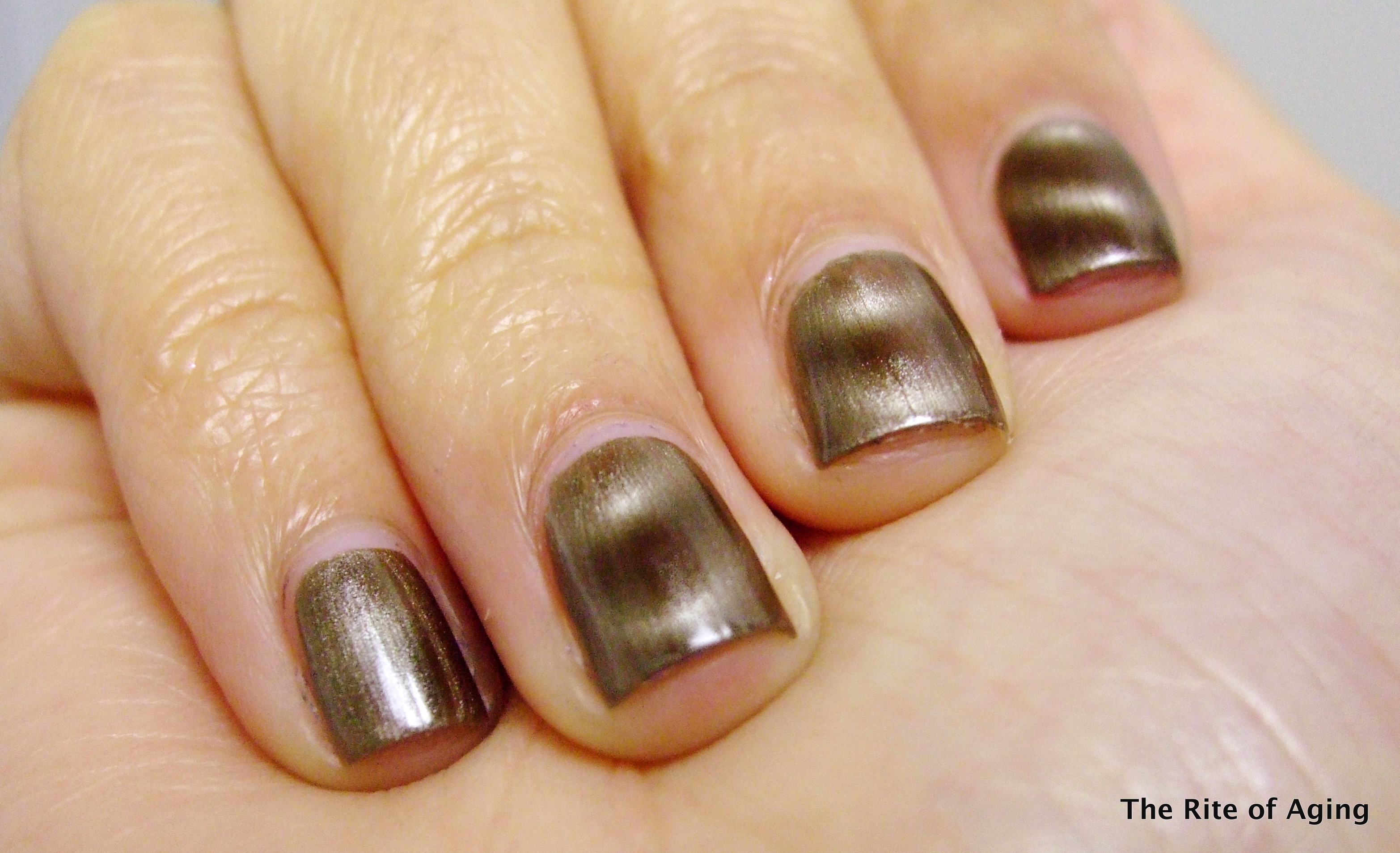 Before the magnet the polish appears as a high-shine frosty brown. After the magnet, the brown is clear and deep.