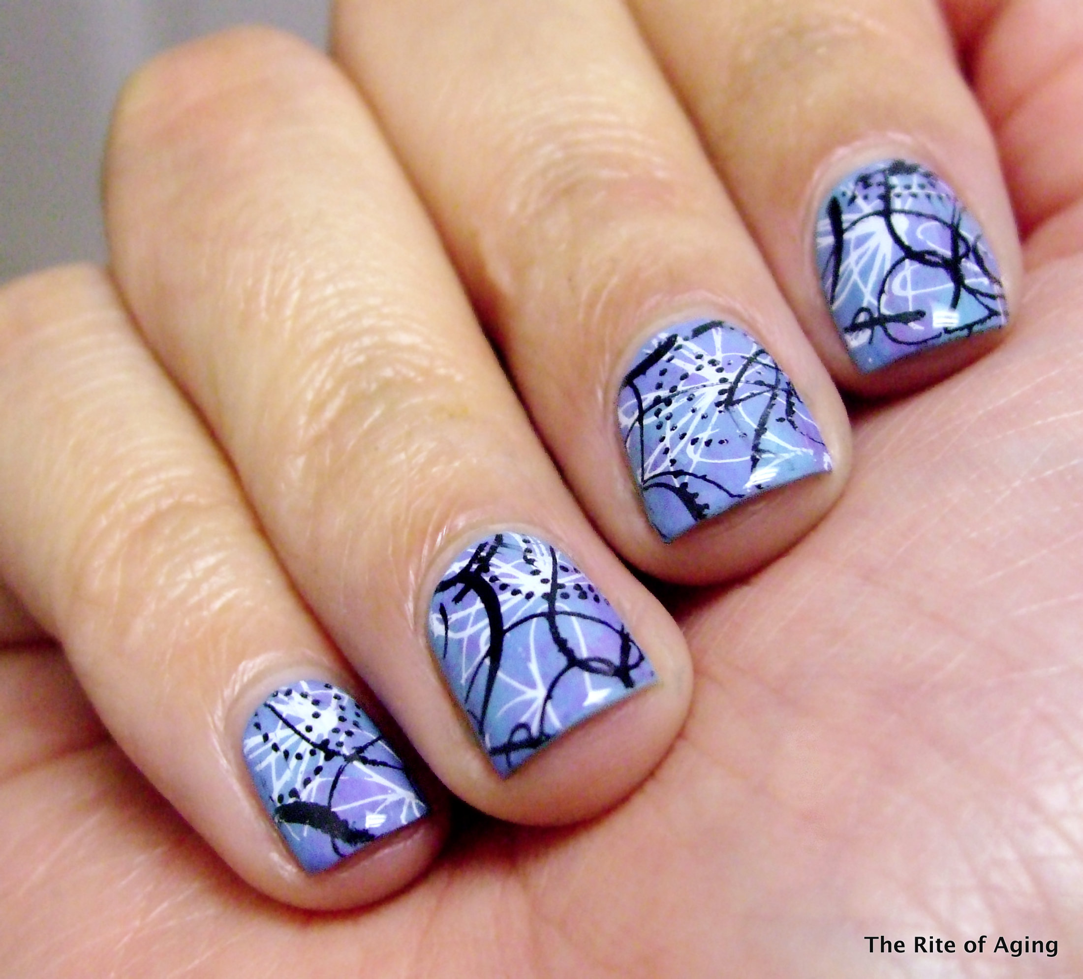 I sponged with a foam eyeshadow applicator Milani Peacock, Vivid Violet, Power Periwinkle and Color Club Pucci-licious.